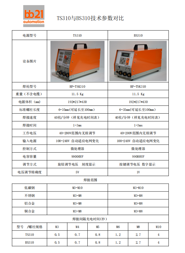 TS310與BS310技術(shù)參數(shù)對比